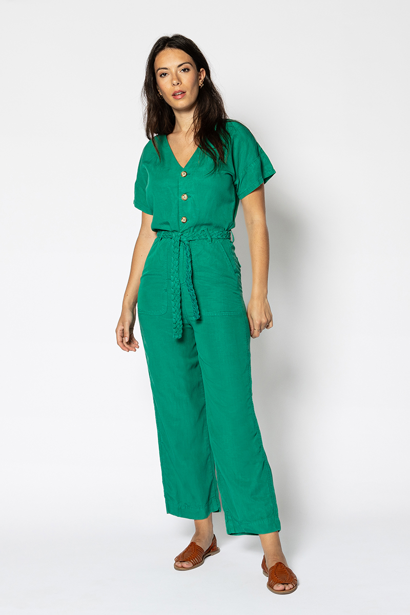 Sa simplicité en fait un choix idéal pour les journées décontractées, mais elle peut également être habillée pour des événements plus formels. La combinaison FREDERICA se décline en 2 couleurs : un vert gazon pep's, et un nougat ultra chic.