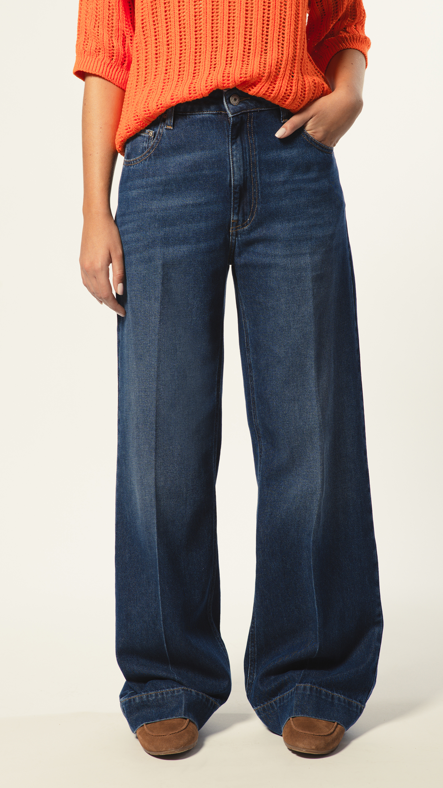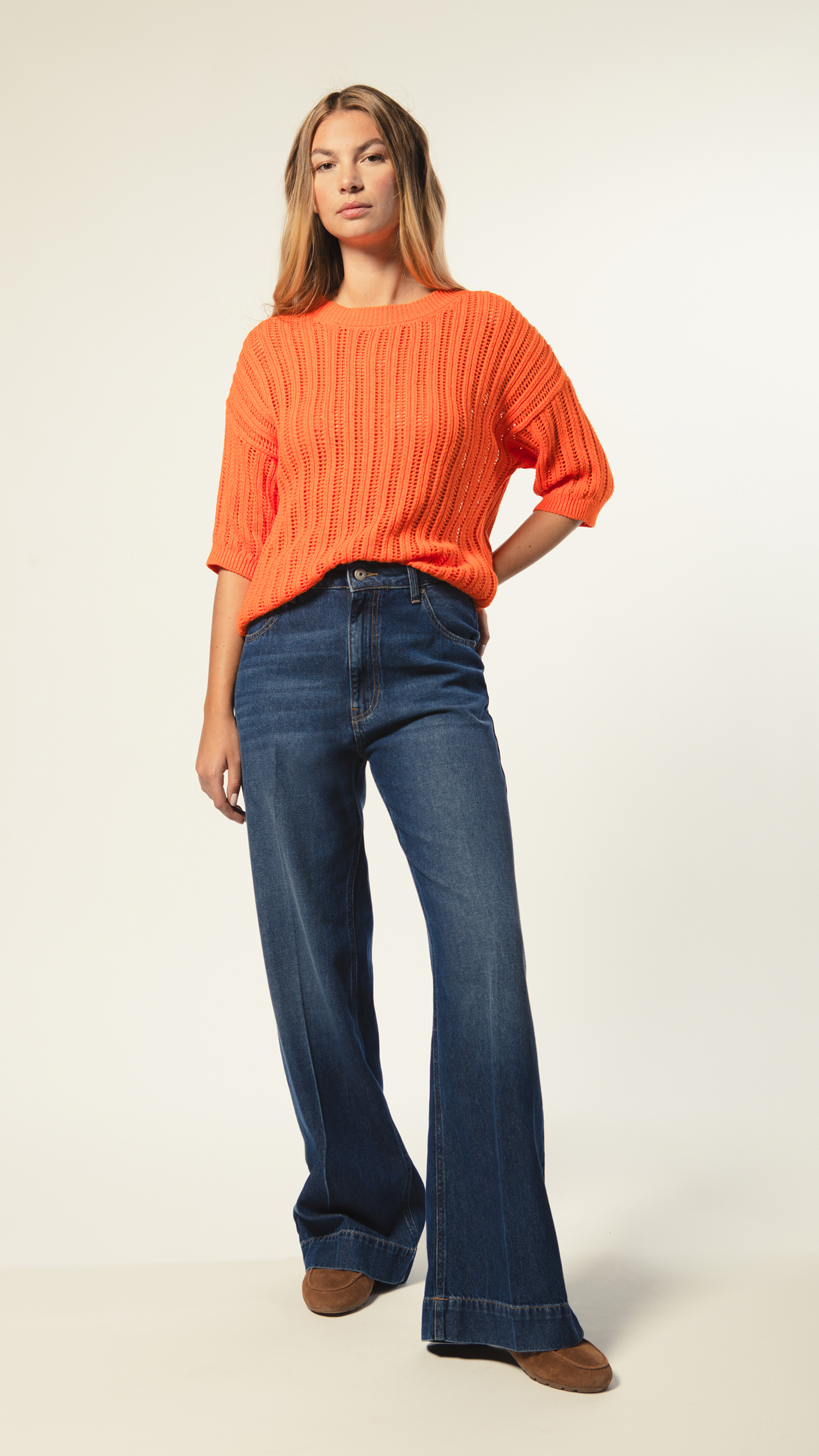 Jean taille haute, jambe évasée. Cool et stylé : le basique rétro qu’on adore.