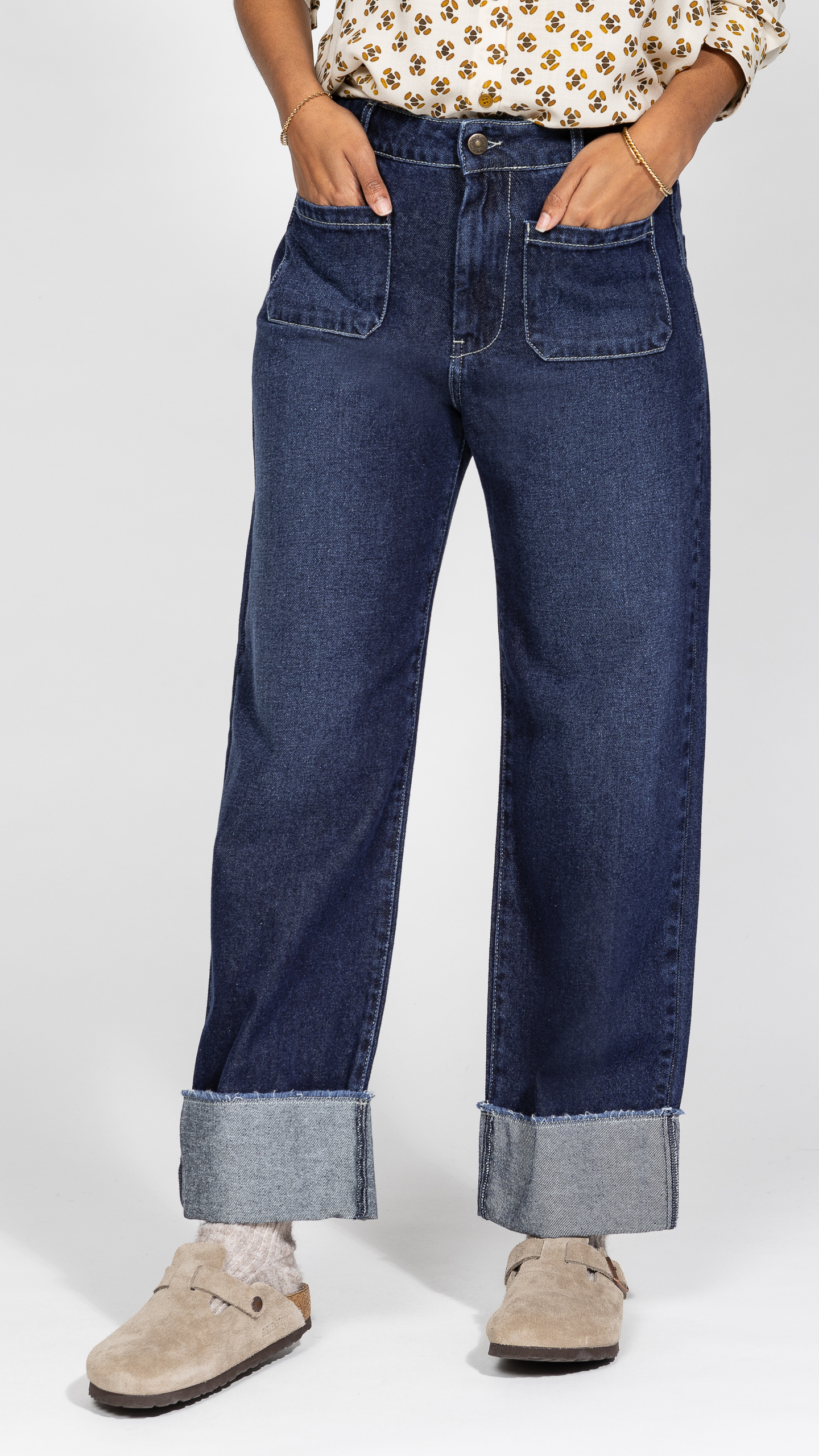 Le jean parfait pour toutes les silhouettes, et particulièrement pour la team petite : une coupe large et taille mi-haute qui allonge la jambe, dans un denim medium blue facile à associer.