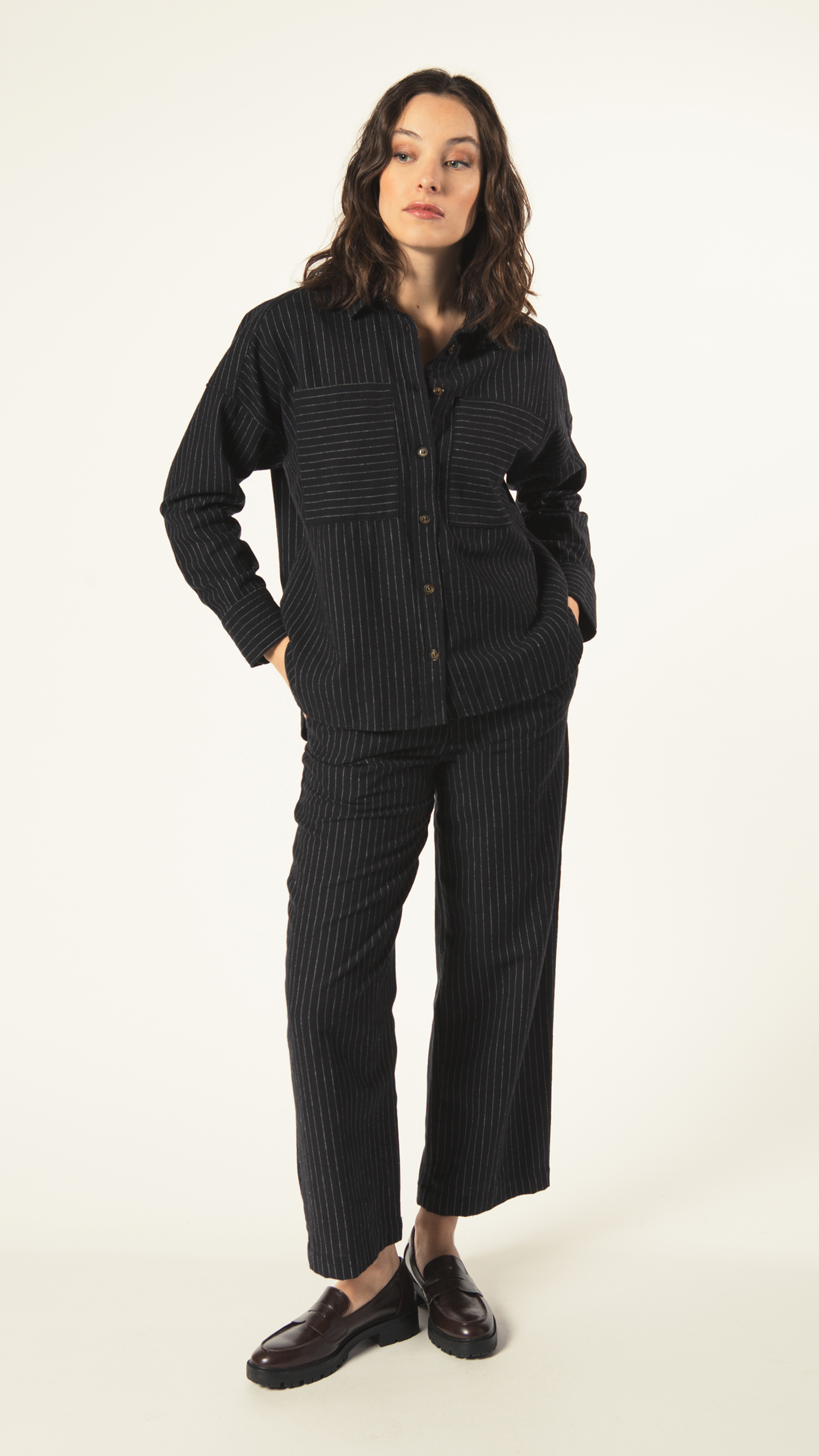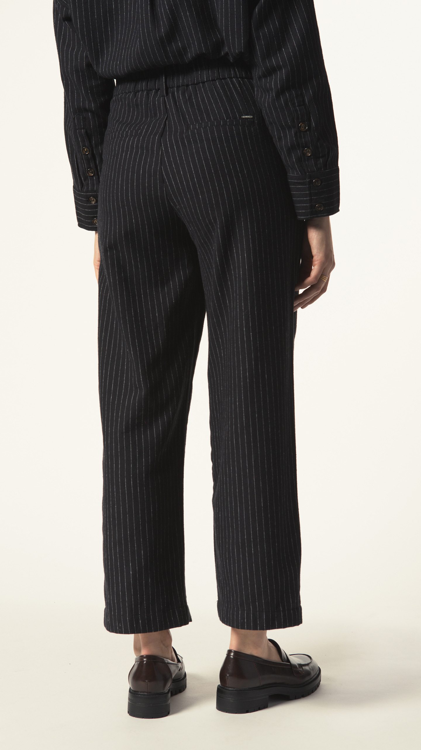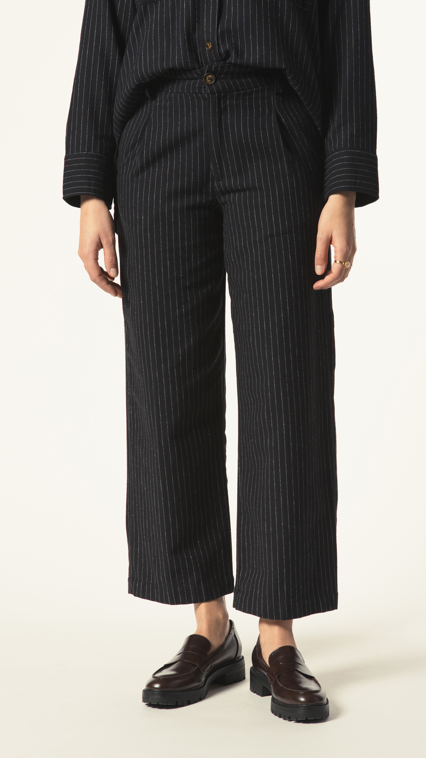 Le MARTINA TENNIS s’impose comme une pièce clé du vestiaire city. Sa taille haute élastiquée et sa coupe tailoring à jambe large mettent la silhouette en valeur, tout en offrant une vraie liberté de mouvement. Le noir classique et les fines rayures blanches lui apportent une touche graphique, facile à porter en toute occasion.