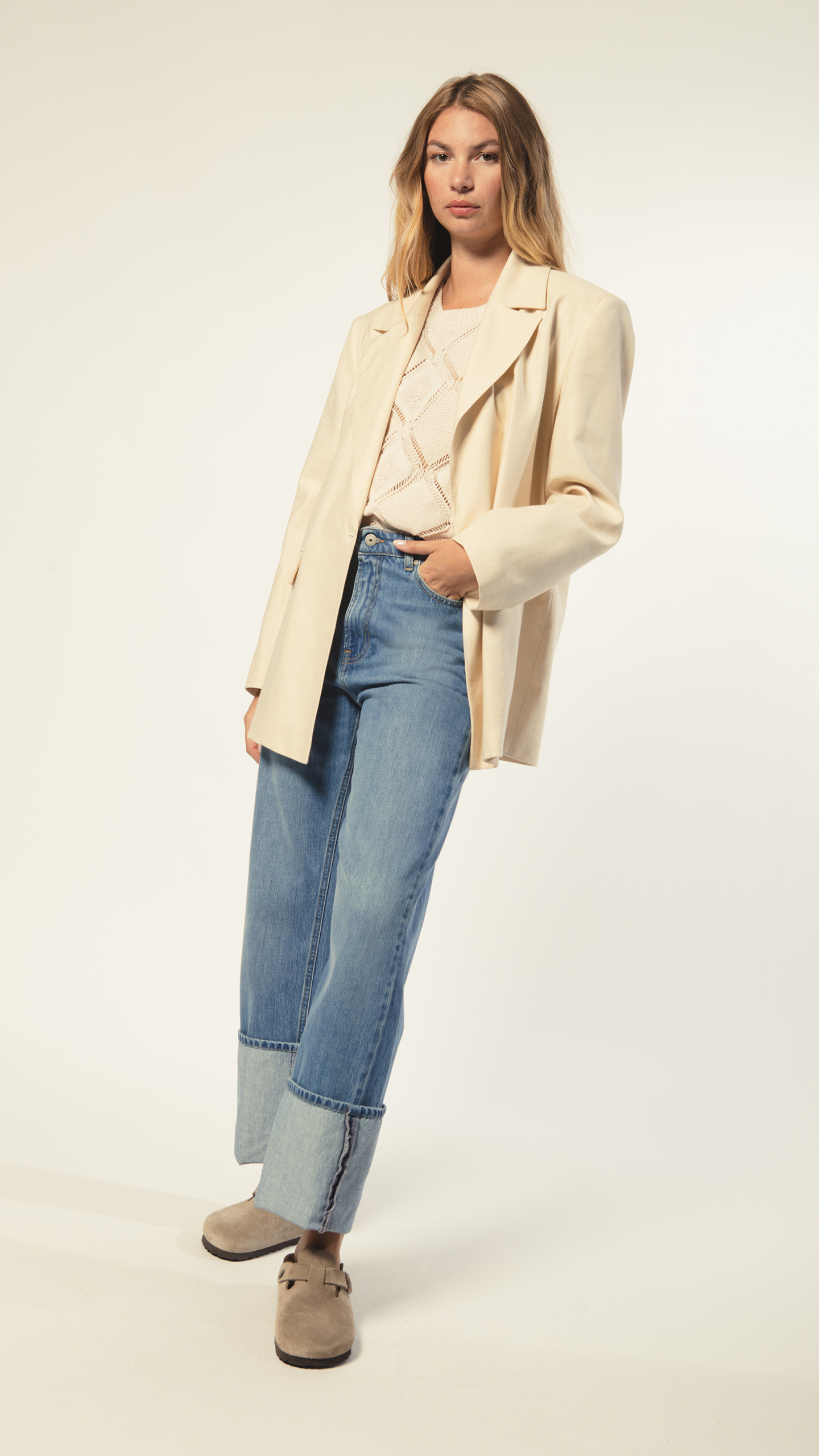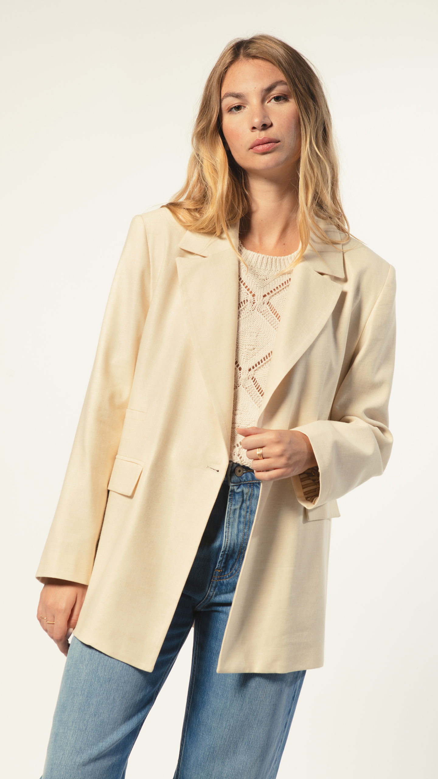 Veste de tailleur légèrement oversize pour un look casual chic.
